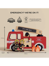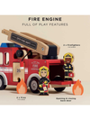 This charming retro red fire engine includes two characters, a rotating and extendable ladder, extendable fire hose, two flames, alongside openable rear and side doors. The roof of the fire engine is removable, allowing children to access the steering wheel and take control of the rescue operations.
