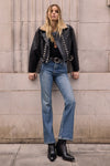 Crafted from pleather and vanilla faux fur, this jacket adds instant attitude to your winter wardrobe. Cut at the waist for a flattering fit and finished with classic biker hardware, it also features a detachable faux-fur collar for versatile styling. Ziggy brings a touch of grungy glamour to your everyday basics.