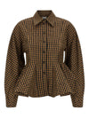 Ganni Crinkled Check Print Shirt in Tobacco Brown