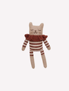 With its striped romper and its cute collar, our kitten soft toy will delight young and old alike! Knitted and embroidered by hand with a lot of attention, it makes a beautiful gift for a birth.
