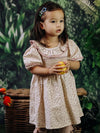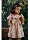 Hand-smocked bodice | Short Puffed Sleeves Back Button Fastenings