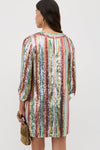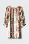 Embellished from top to bottom with rainbow stripe sequins, Laurie is the ultimate party mini. Cut with an elegant, round neckline and with romantic bishop sleeves that have a vintage-feel, billowing effect, it’s a beautifully flattering – a dream for birthday parties to NYE.