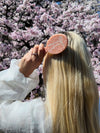 Vegan boar-like bristles distribute natural oils and smooth hair, while flexible pins gently detangle and massage the scalp.
