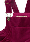 Soft velvet overalls in a heavy fabric. Designed with straps and buckle closure, pockets, and decorative gatherings at the top part.