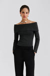 By Malina Cirella Knitted Off The Shoulder Top in Black