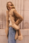 Elevate your cold weather wardrobe with Lulu. Fashioned from faux suede and Mongolian trims, this jacket feels both lightweight and luxurious. Lulu's relaxed silhouette and golden hues instantly elevate the everyday.