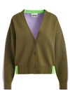 Essentiel Antwerp Colorblock Fine-Knit Cardigan in Olive Martini