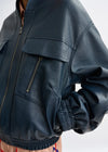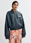 Essentiel Antwerp Oversized Faux-Leather Bomber Jacket in Navy
