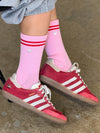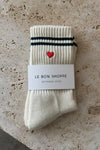 The classic Boyfriend socks you know and love, now with a little extra love. This year-round best seller maintains the perfect mix of function and fashion, creating an effortless sporty vintage charm to any outfit. It's slightly longer than a classic crew and has a contrast double stripe. A fun, embroidered heart sits just below the stripes for an endearing touch, making them the perfect pair to gift or soak up all the love in yourself.