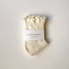 A fun, flirty addition to the Hugger group. Just like the original, this style includes a light silicone grip along the sole for easy, stay-put wear. The crew length and ruffled ankle bring a soft, playful finish—perfect for pairing with flats, clogs, or slides.