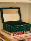 The Tide's Treasure Box is an enchanting treasure box in a deep green colour with shell details. The inside of the box has a mirror. This item is perfect for storing your best memories, jewellery or small treasures.