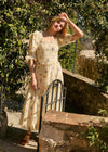 With feature puffed sleeves, a four tier gypsy skirt & a shirred bodice nipping in at the true waist, Daisy is a flattering take on pairie style. A delicate ruffle square neckline & peplum, edged in contrast vintage lace elevate this look from the everyday. Cut from the softest, lightweight GOTS certified organic cotton, this dress moves beautifully & has a fully lined body & skirt.