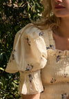 All ST. CLAIR prints are unique, painted in England by hand in watercolour & inspired by the English Countryside. This print was inspired by a beautiful vintage print & a type of rose which grows on the plains near my childhood home. Coloured in vintage denim blue, peach, and faded green, on a warm ecru coloured cotton, Wild Rose will suit all skin tones and is sure to become a forever favourite in the ST. CLAIR library.