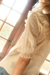 Cut from GOTs organic cotton voile and available in a range of prints, Felicity features a wide scoop ruffle neckline trimmed in contrast vintage lace, an intricate pintuck bodice and hand-smocked half sleeves. The perfect piece to elevate your every day jeans.