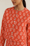 This season, the Dean Jacket comes in a vibrant red shade with floral printed details — the perfect statement piece for spring-summer